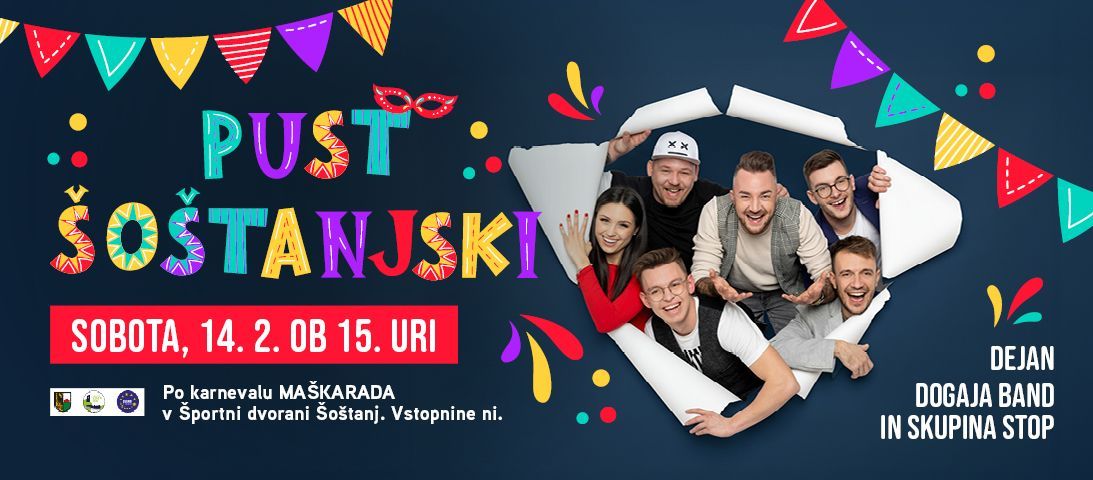 Po karnevalu se bo zabava preselila v Športno dvorano Šoštanj, kjer bodo za odlično vzdušje skrbeli skupina Stop in Dejan Dogaja band.