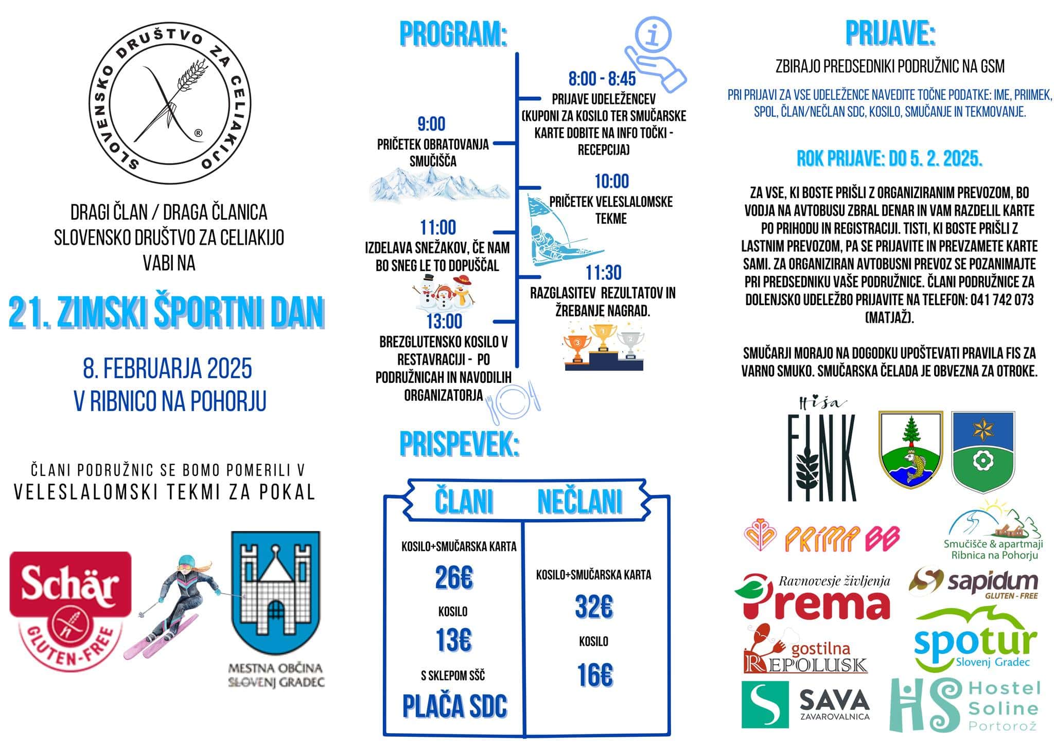 Podružnica Slovenskega društva za celiakijo za Koroško (SDC Koroška) tudi letos že tradicionalno organizira zimski športni dan za vse članice in člane Slovenskega društva za celiakijo, ki vsakoletno poteka 8. februarja v Ribnici na Pohorju.